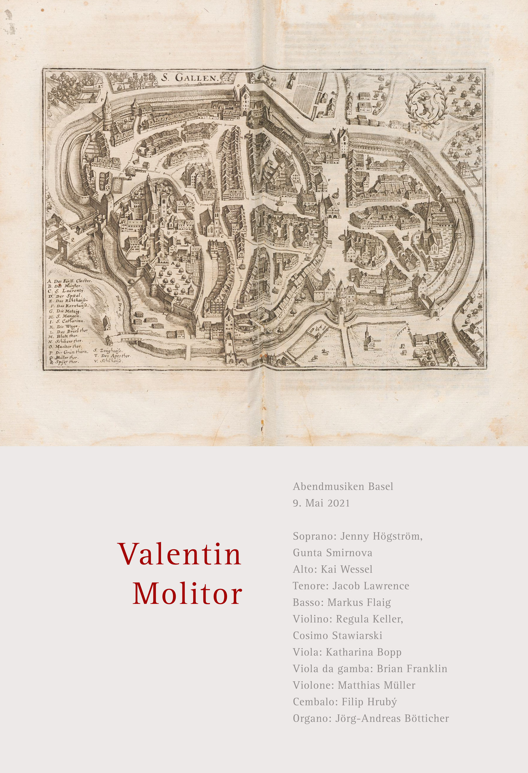 Abendmusiken Basel, Mai 2021 Valentin Molitor Bild: Matthaeus Merian: Topographia Helvetiae, Rhaetiae, et Valesiae ... Franckfurt am Mayn, im Jahr M DC LIV. [1654] ETH-Bibliothek Zürich